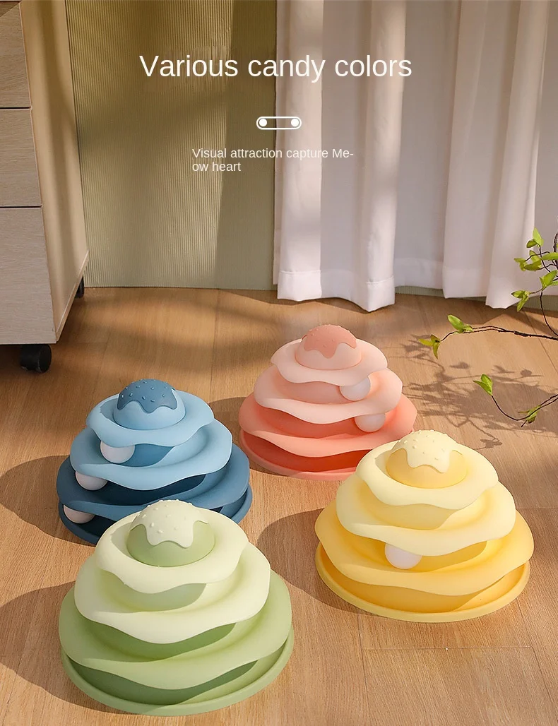 Cat Toy Tower Turntable Roller Balls 4 Levels