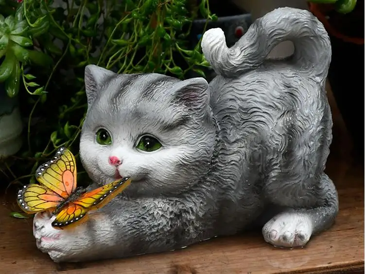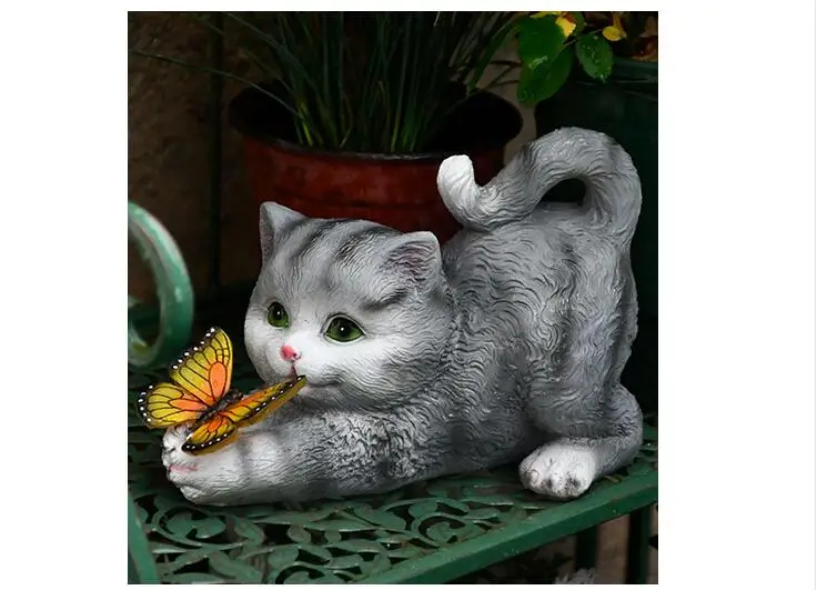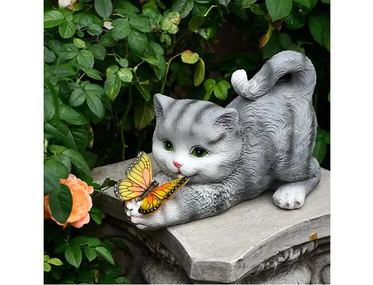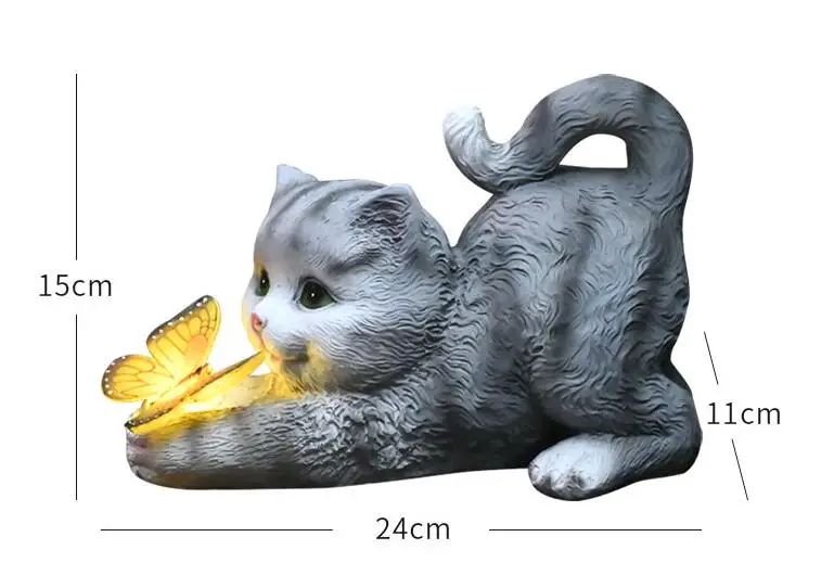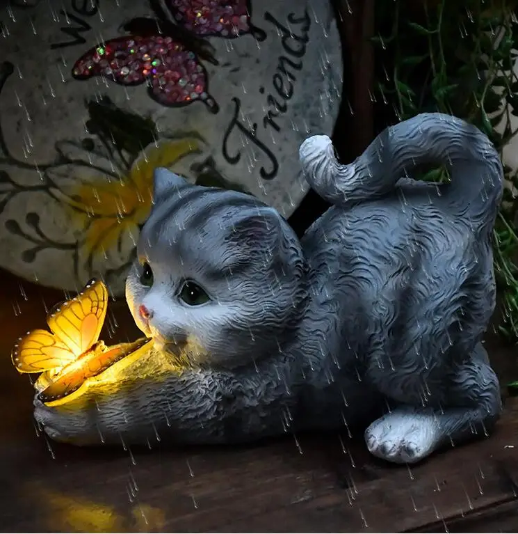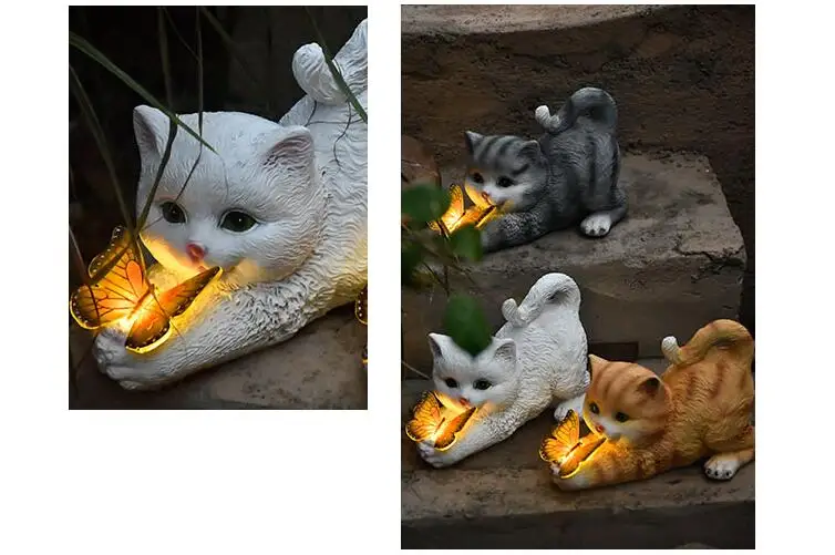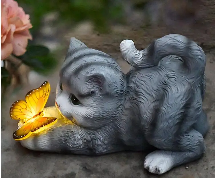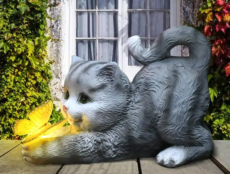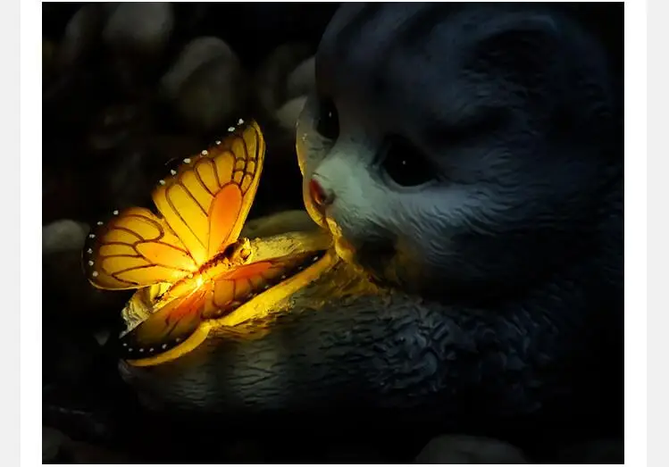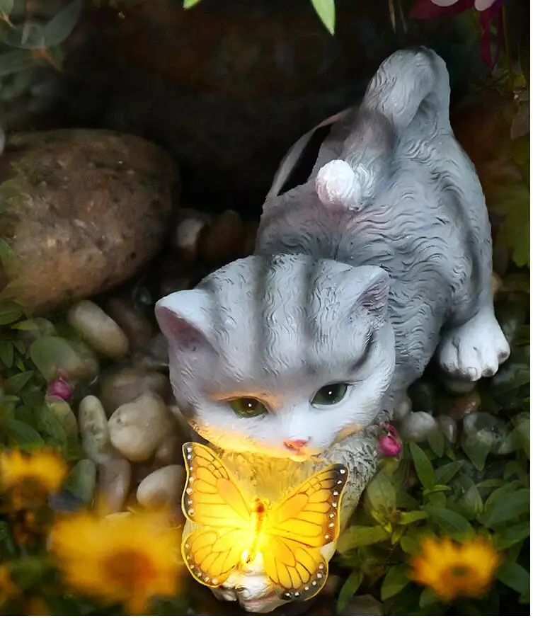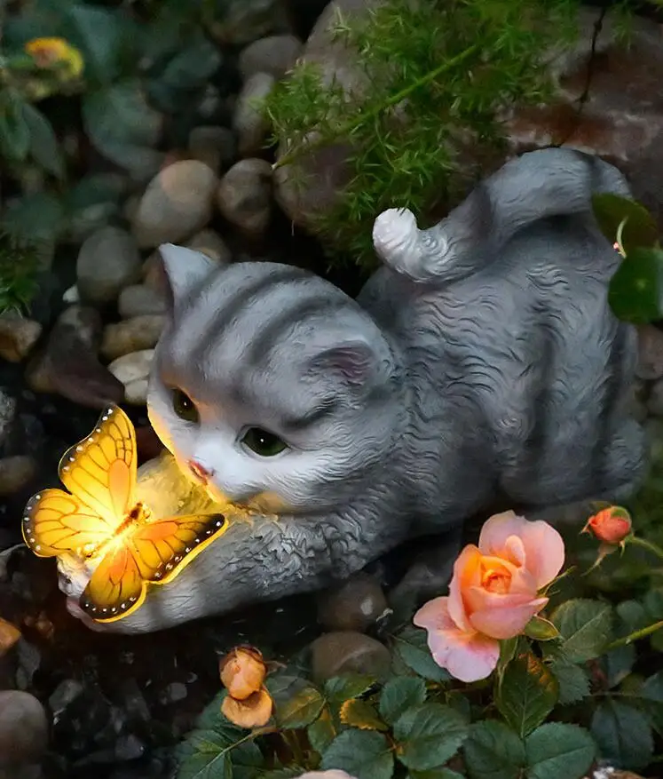 Solar Light Butterfly And Cat Resin Outdoor Sculpture