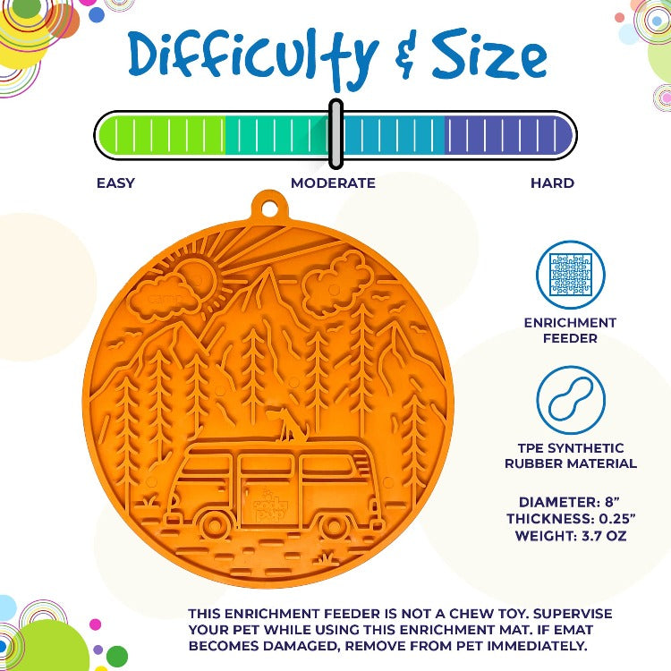 Camp eMat - Enrichment Lick Mat For Dogs and Cats - with Suction Cups | Retro Van Design | USA Made