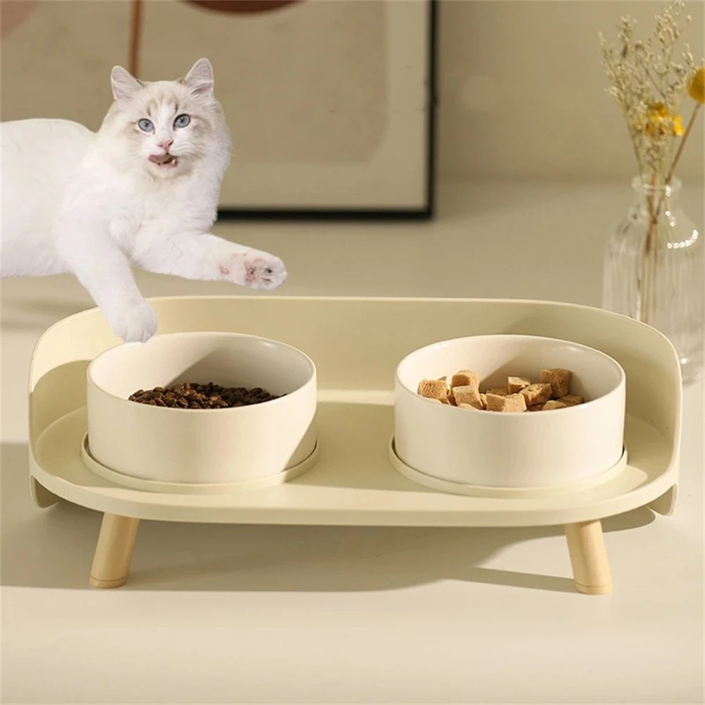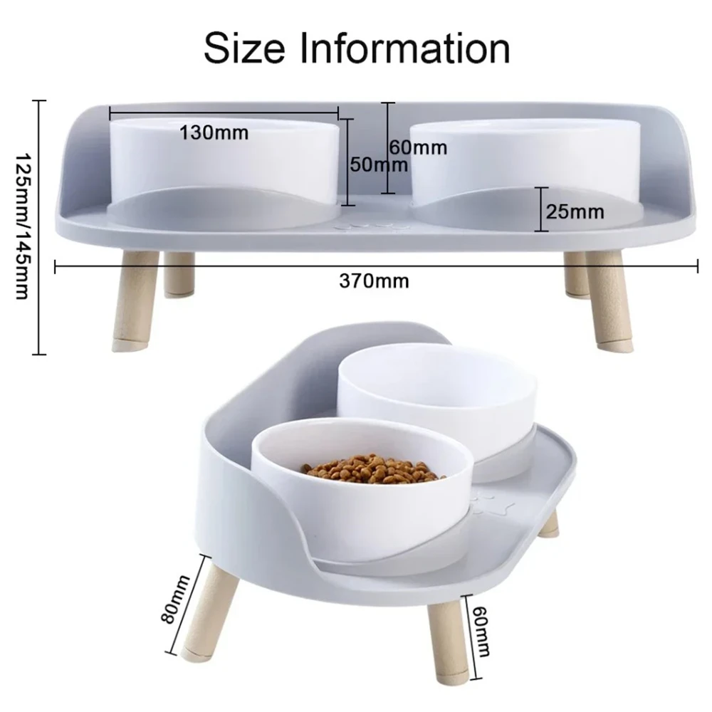 Raised Double Bowl Feeder, Adjustable Height Anti-tip Protection