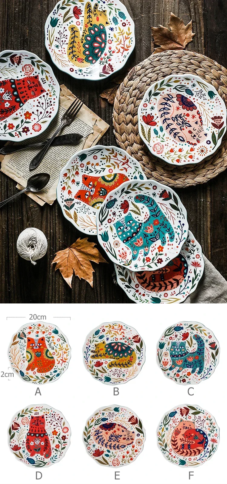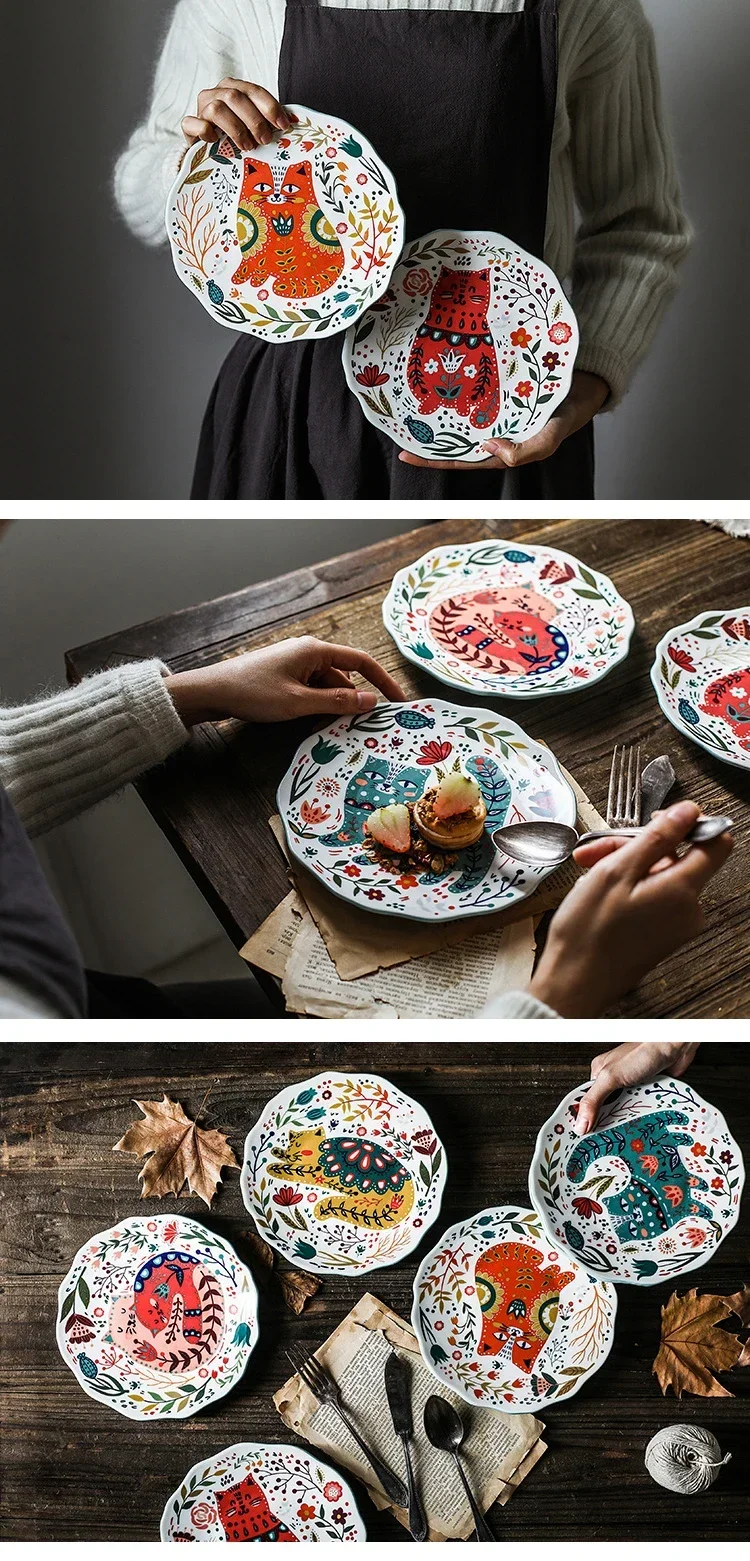 Ceramic 8 Inch Round Dishes, Cat Patterned