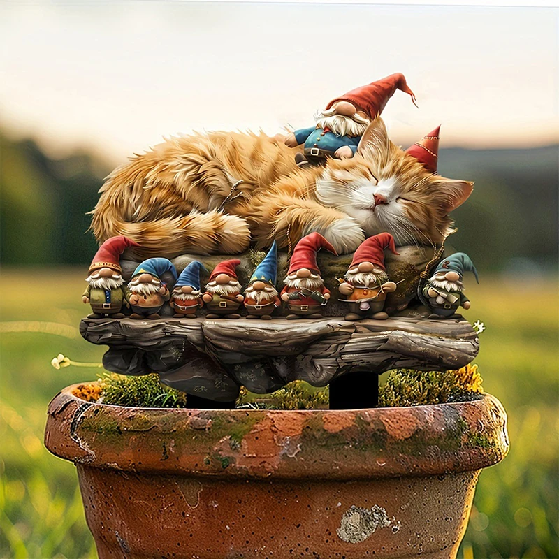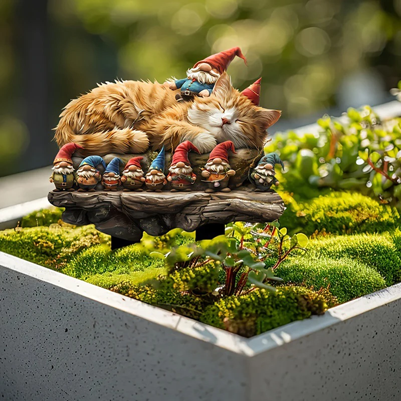 Dwarfs And Cat Acrylic Garden Outdoor Decoration