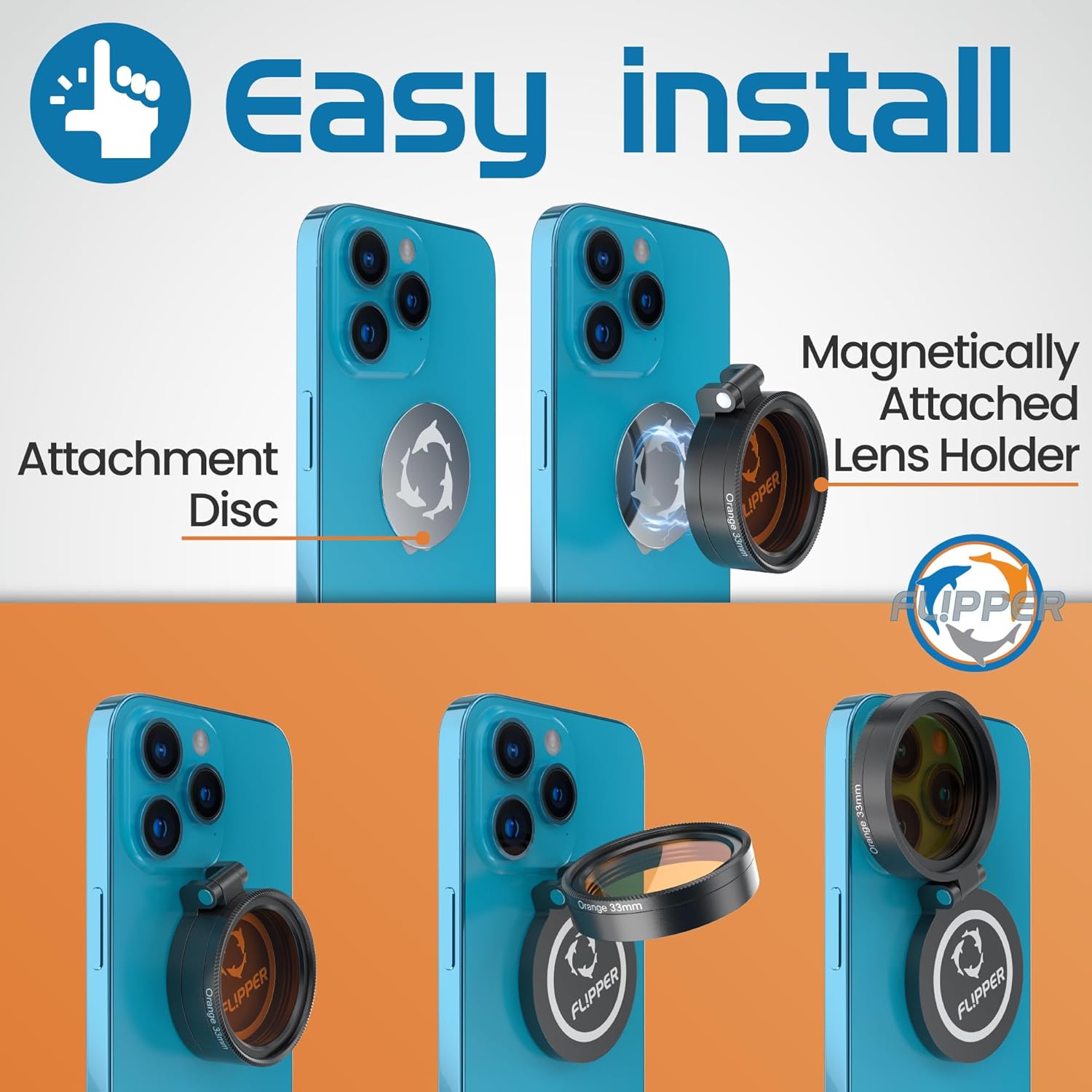 Flipper Flip-Kick Phone Filter Aquarium Reef Lens with Orange and Yellow Lenses