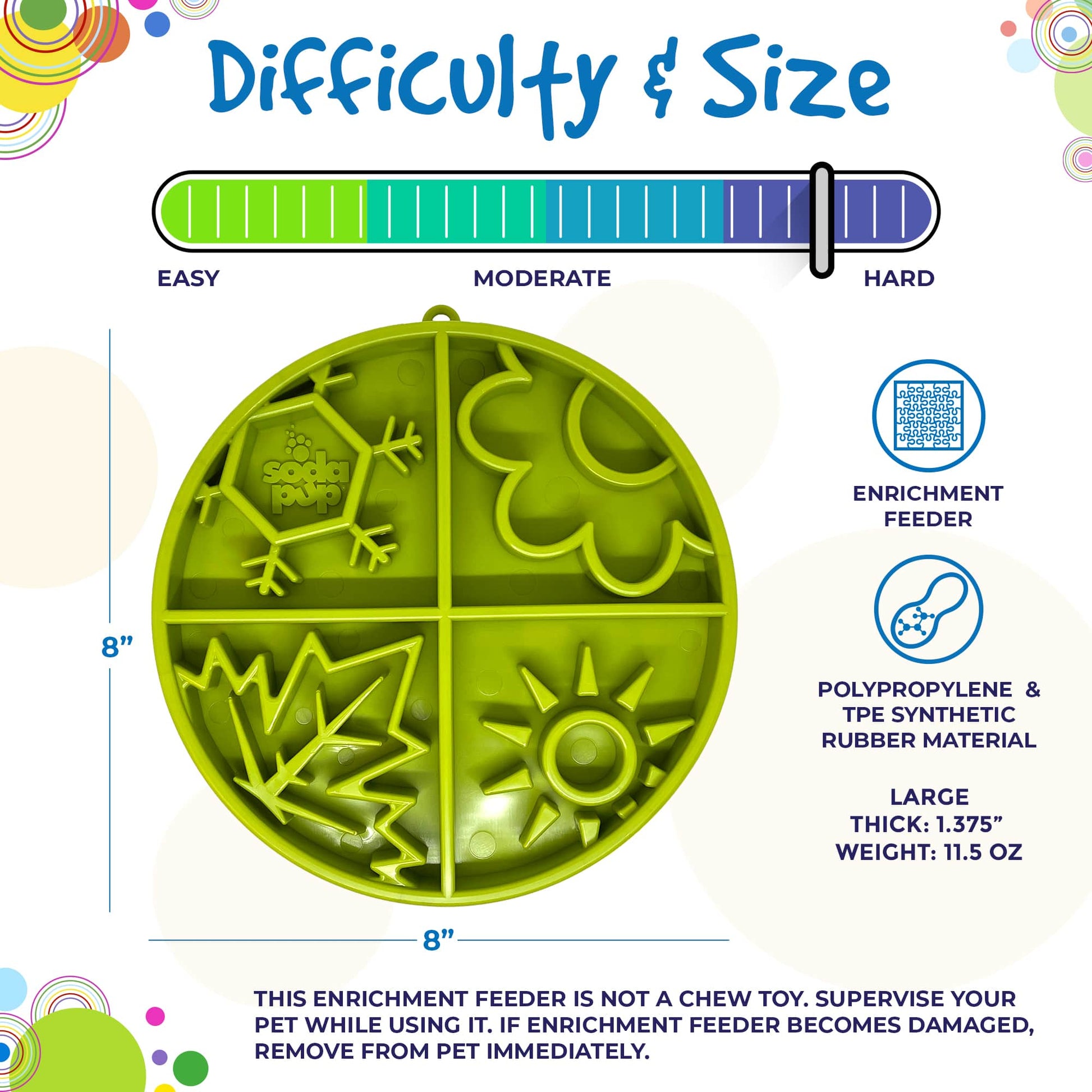 The SodaPup Four Seasons Design eTray is a shallow slow feeder dog bowl designed to transform mealtime into an engaging enrichment activity year-round. Made from premium FDA-compliant materials in the USA, this innovative feeding tray features a beautiful four seasons pattern representing spring, summer, fall, and winter with raised ridges that slow eating, improve digestion, and provide mental stimulation for dogs of all sizes and breeds.