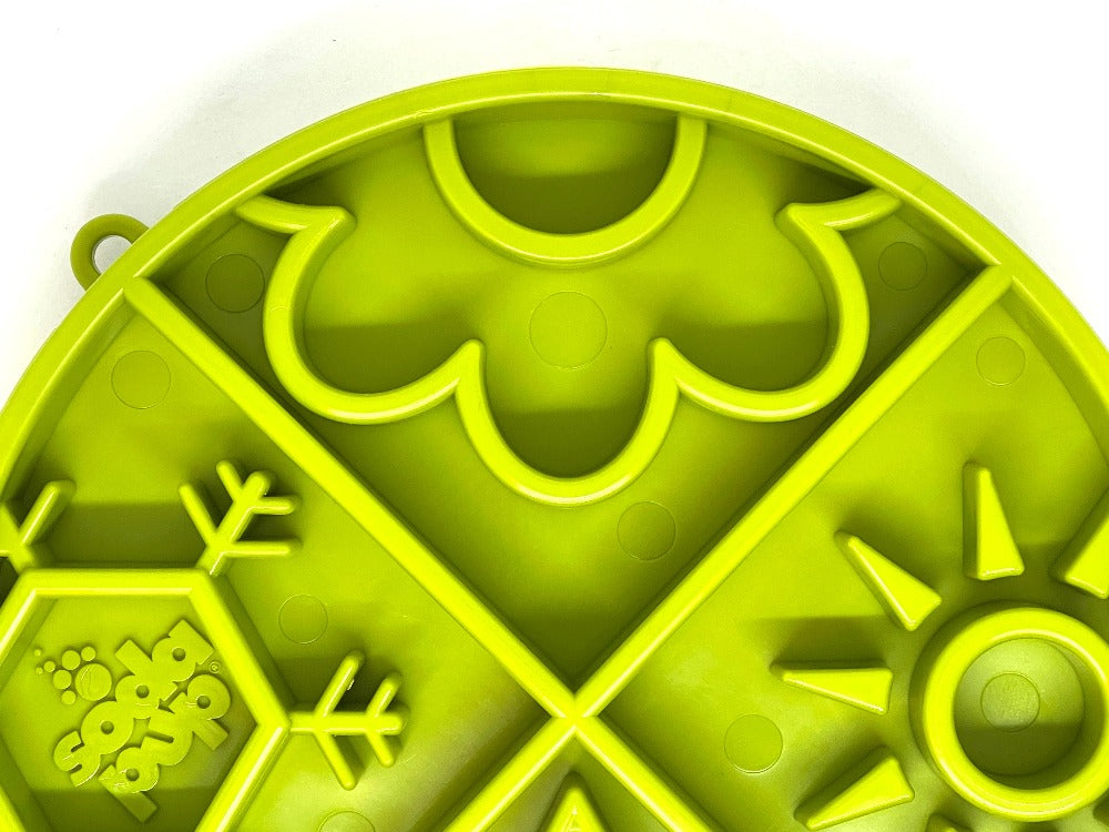 As a Lick Mat: Spread peanut butter, yogurt, pureed fruits, or wet food across the pattern for extended licking enrichment. The shallow design and intricate four seasons pattern maximize licking time.