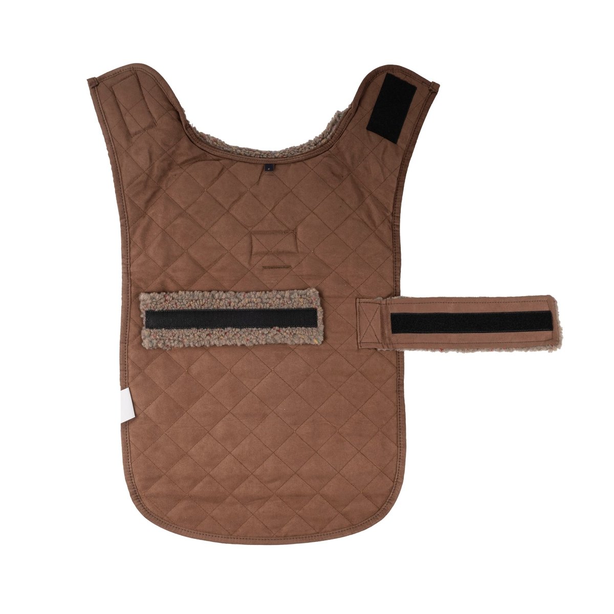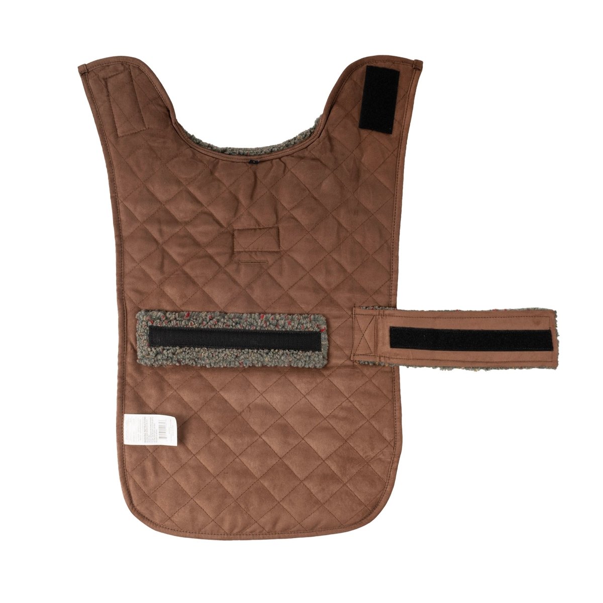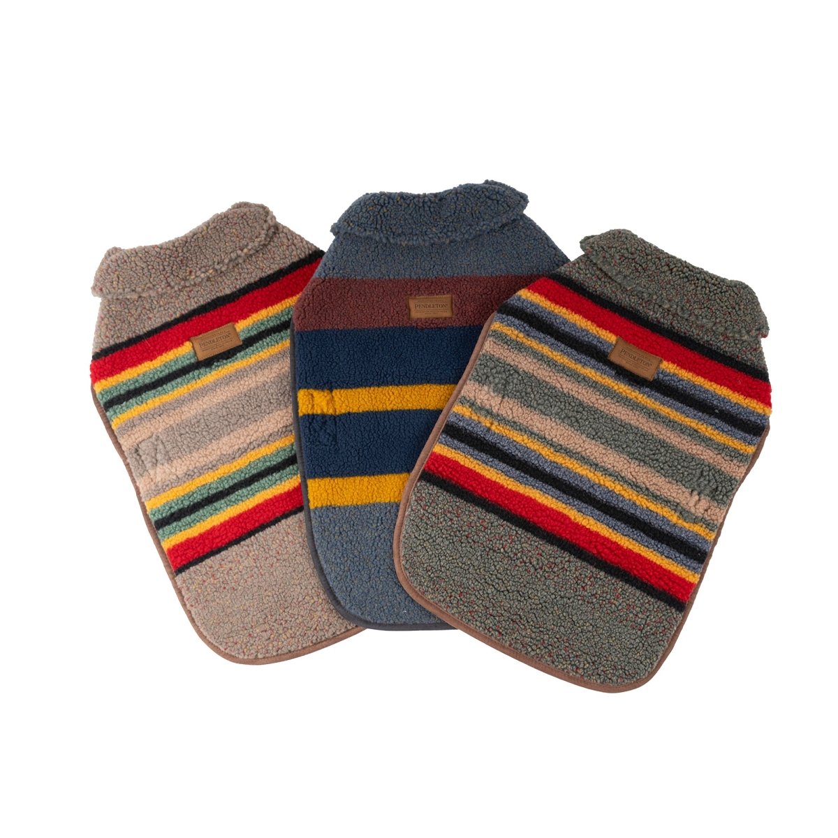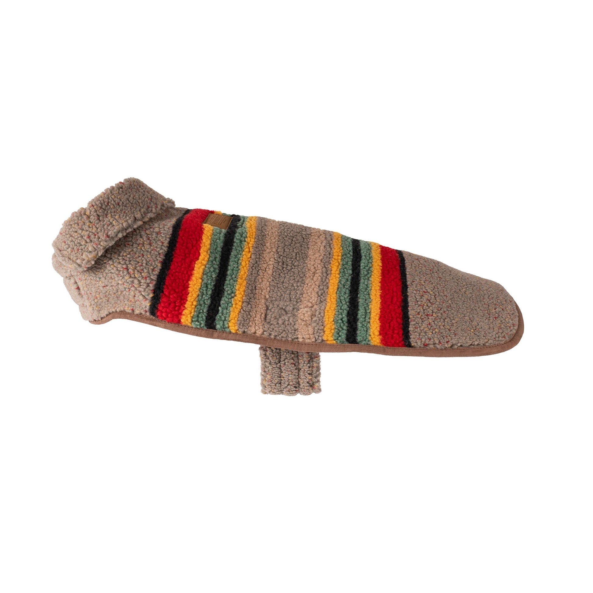 Bundle up for chilly days with the Pendleton Vintage Camp Coat. The iconic vintage camp blankets have been reimagined in a cozy berber fabric that reverses to a brown, quilted faux suede to keep your pet protected and stylish. It features a hook & loop belt for easy on/off and adjustability, plus it has a cut out to hook your leash to your dog’s harness or collar.