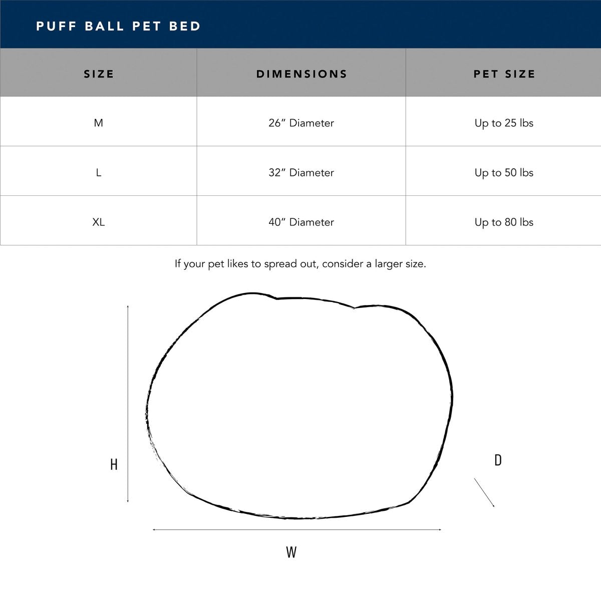 The Sherpa Puff Ball Pet Bed offers a warm and inviting retreat that both cats and dogs adore. Its soft, plush design provides a comforting pouf perfect for curling up and relaxing during long naps. Featuring a zippered cover and liner, this bed makes cleaning simple and hassle-free, helping maintain a fresh resting space for your furry friend. It is filled with a plush polyester fiber fill made 100% of recycled water bottles.