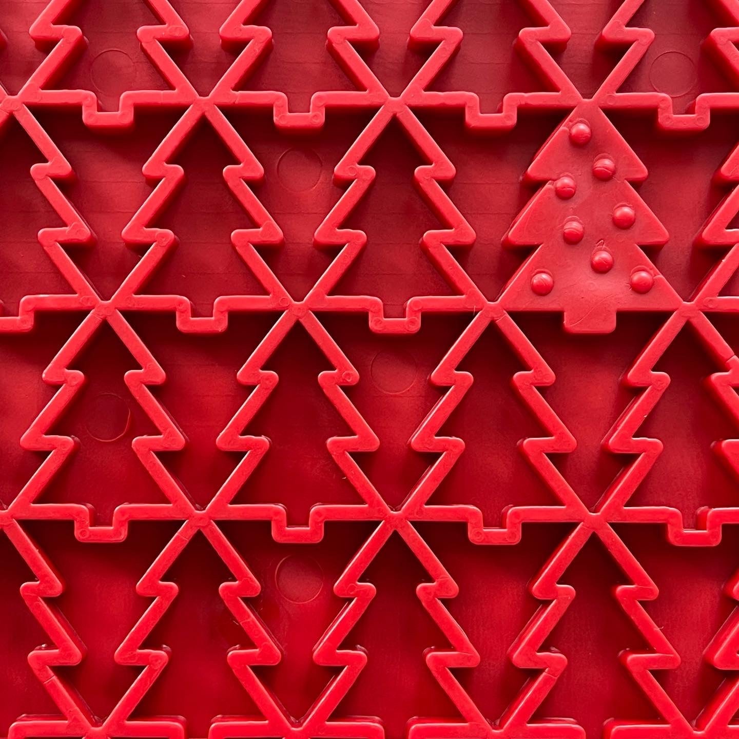 The repeating tree pattern creates a complex, multi-textured surface that's functionally ideal for enrichment. The pattern has different depths and angles that challenge dogs to lick more thoroughly. Each element holds spreads differently, creating multiple mini-challenges within a single mat that promote extended engagement and comprehensive mental stimulation.