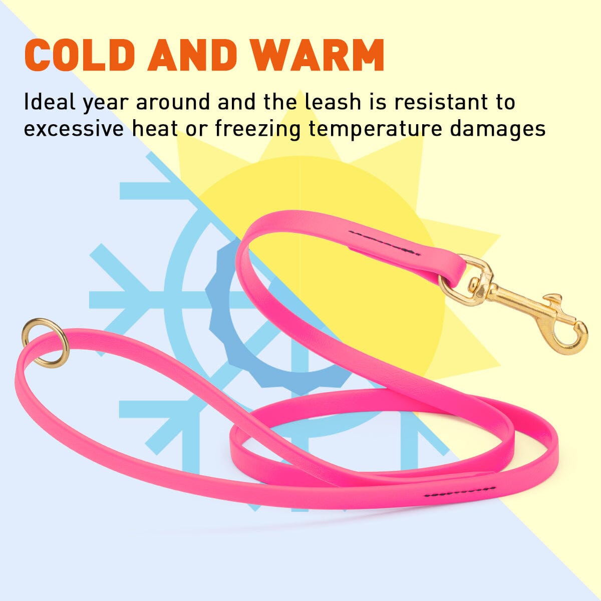 - EXCELLENT PERFORMANCE: Biothane dog leash will not get stiff during extreme cold and will not melt during extreme heat. Super Heavy Biothane webbing has up to 750 lbs of breaking strength.