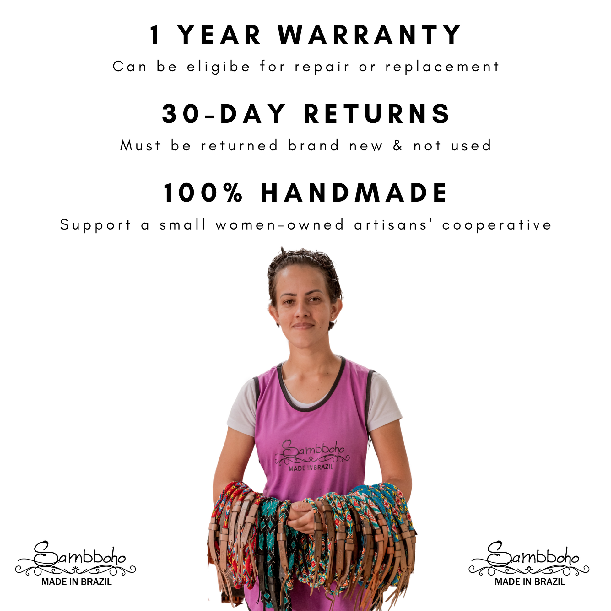 Handmade in Brazil by female artists. Full Grain Leather. Scratch Resistant. Water Repellent. Free Shipping, 1-year warranty, 30-day returns. Ship from USA.